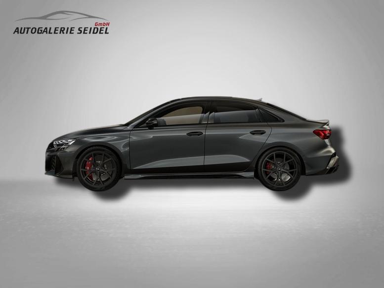 • Optikpaket schwarz plus [RS 3-Emblem in Schwarz / Zierleisten an den Seitenscheiben in Schwarz / Audi Ringe vorn und hinten in Anthrazitgrau]