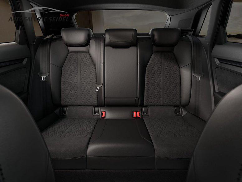 • Mikrofaser Dinamica/Kunstleder-Kombination mit Rautensteppung und RS-Emblem [Sitzmittelbahn der Vorder- und der beiden äußeren Fondsitze in Mikrofaser Dinamica / Sitzseitenwangen, Kopfstützen, mittleren Sitzplatz im Fond und Mittelarmlehne vorn in Kunstleder schwarz / Kontrastnähte und Rautensteppung / RS-Prägung in den Lehnen der Vordersitze]