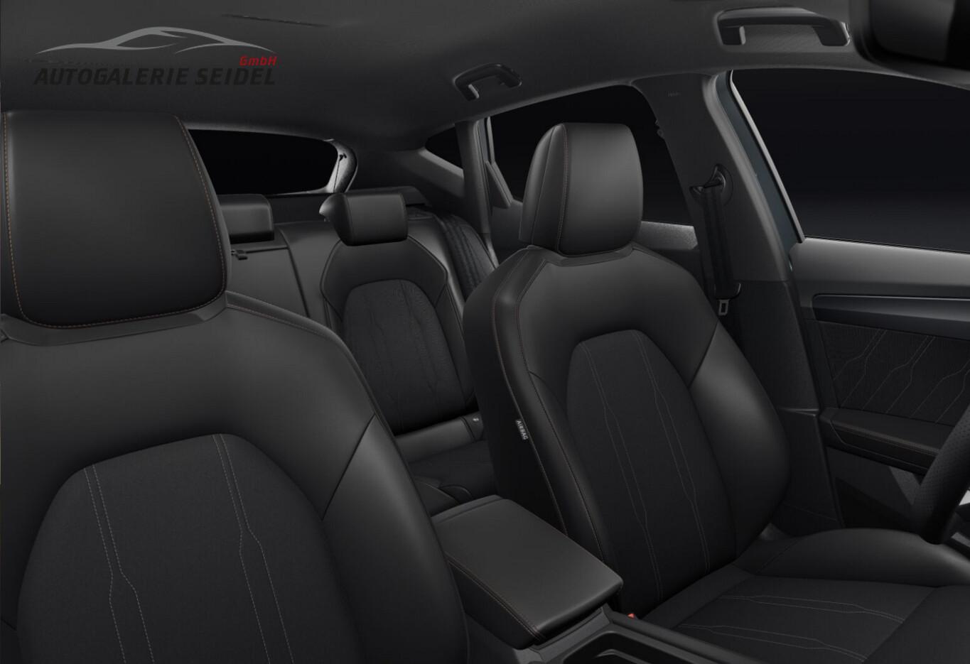 Intelligent-Drive-Paket III (Fahrassistenz-Paket XL / Mobile Online Dienste Cupra Connect plus / Audio-Navigationssystem mit Touchscreen Farbbildschirm 12,9" / Sprachsteuerungs-System / Kamerasystem Umgebungsansicht (Top View, 360°) / Fahrassistenz-System: Totwinkel-Assistent mit Auspark-Assistent, Spurwechselassistent und Ausstiegswarnung / Fahrassistenz-System: Intelligent Park Assist (IPA) / Fahrassistenz-System: Pre-Crash-System / Fahrassistenz-System: Spurhalteassistent Plus inkl. Travel Assist, Emergency Assist und Stauassistent), Edge-Paket (Ambiente-Beleuchtung LED / Ambiente-Beleuchtung Smart Ambient Light / Schließ-/Startsystem Kessy Advanced / Heckklappe/-Deckel elektr. betätigt (öffnen + schliessen, sensorgesteuert) / Rückfahrkamera / Diebstahl-Warnanlage mit Innenraumüberwachung und Abschleppschutz), Winter-Paket (Sitzheizung vorn), Anhängerkupplung Vorbereitung, Ablagetaschen an Vordersitzlehnen, Fahrassistenz-System: Ausweich- und Abbiegeassistent, Induktionsladeschale für Smartphone, Knieairbag vorn, LM-Felgen 8x18, Pedale Aluminium-Design, Reifen 245/45 R18, Schadstoffarm nach Abgasnorm Euro 6e (EU6 EA), Tagfahrlicht, Wegfahrsperre elektrisch, Licht- und Sicht-Paket (Innenspiegel mit Abblendautomatik / Einschaltautomatik für Fahrlicht / Licht- und Regensensor / Lichtassistent (Coming Home, Leaving Home)), Voll-LED-Paket (Leuchtweitenregelung automatisch / Heckleuchten Voll-LED mit dynamischem Lichtband (Infinite Light) / Nebelscheinwerfer LED mit Abbiegelicht / Scheinwerfer Voll-LED), Abdeckkappen Außenspiegel Schwarz, Dachhimmel schwarz, Einstiegsleisten vorn beleuchtet, Fensterzierleisten schwarz, Gepäck-/Laderaumboden doppelt, Karosserie: 5-türig, Kombiinstrument digital (virtual cockpit), Lendenwirbelstütze Sitz vorn links, verstellbar, Lendenwirbelstütze Sitz vorn rechts, verstellbar, Leseleuchten hinten LED, Leseleuchten vorn LED, Mild-Hybrid 110 kW (Motor 1,5 Ltr. - 110 kW eTSI), Otto-Partikelfilter (OPF), Parkbremse elektrisch mit Auto-Hold-Funktion, Radioempfang digital (DAB+), Sitz vorn links höhenverstellbar, Sitz vorn rechts höhenverstellbar, Sitzbezug / Polsterung: Stoff/Kunstleder schwarz (Sharp Textil), Sonnenblende links mit Spiegel (beleuchtet), Sonnenblende rechts mit Spiegel (beleuchtet), Steckdose 230V im Gepäckraum, Warnanlage für Sicherheitsgurt-System, Full Link (MirrorLink, Apple CarPlay und Android Auto), USB-Ladeanschlüsse (2-fach, Typ C) für 2.Sitzreihe, USB-Schnittstelle vorn (2-fach, Typ C), Antriebsart: Frontantrieb, Elektron. Differentialsperre (XDS), Getriebe 7-Gang - Doppelkupplungsgetriebe DSG, Klimaanlage Climatronic 3-Zonen, Airbag Beifahrerseite abschaltbar, Airbag Fahrer-/Beifahrerseite, Fensterheber elektrisch vorn + hinten mit Komfortschaltung, Isofix-Aufnahmen für Kindersitz an Beifahrersitz und Rücksitz (inkl. i-Size-Kindersitze), Kopf-Airbag-System, Mittelarmlehne vorn, Rücksitzlehne geteilt/klappbar mit Mittelarmlehne und Durchladeeinrichtung, Seitenairbag, Seitenairbag vorn mitte (Central Airbag), Seitenscheiben ab 2.Sitzreihe und Heckscheibe dunkel getönt (Privacy Glass), Fahrassistenz-System: Fahrprofilauswahl (CUPRA Drive Profile), Dachreling schwarz, hochglänzend, Wärmeschutzverglasung, Fahrassistenz-System: Autom. Distanzregelung (ACC / PCC) mit vorausschauender Geschw.-Regelung, Fahrassistenz-System: Verkehrszeichenerkennung, Notrufsystem, Lenkrad heizbar (CUPRA Supersport, Leder) mit Multifunktion und Schaltfunktion, Außenspiegel elektr. verstell-, heiz- und anklappbar mit Spiegelabsenkung und Welcome Light, Fahrassistenz-System: Fernlichtassistent, Einparkhilfe vorn und hinten, Fahrassistenz-System: Müdigkeitserkennung, Fahrassistenz-System: Spurhalteassistent, Fahrassistenz-System: Umfeldbeobachtungssystem (Front assist) mit City-Notbremsfunktion, Reifenkontroll-Anzeige, Start/Stop-Anlage