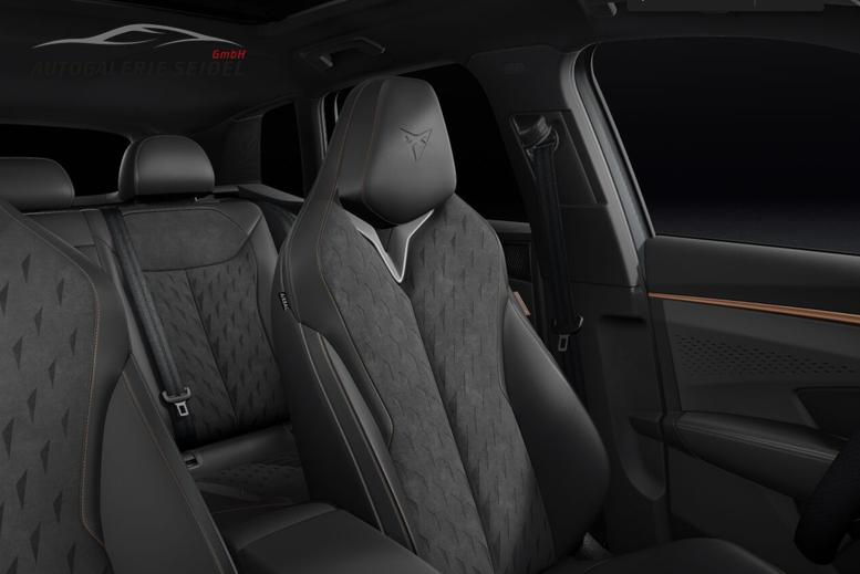 • CUPRA Advanced Paket [Edge Paket (Seitenscheiben ab 2. Sitzreihe und Heckscheibe dunkel getönt / Multifunktionslenkrad in Leder mit Schaltwippen, beheizbar / Einstiegleisten vorn, beleuchtet / Smart Ambient Light / Heckklappe elektrisch betätigt (Öffnung& Schließung) inkl. sensorgesteuerter Öffnung (virtuelles Pedal) / Automatische Distanzregelung / Climatronic mit 3-Zonen-Temperaturregelung / Schlüsselloses Schließ- und Startsystem "Kessy" / Diebstahlalarmanlage, Innenraumüberwachng, Back-up-Horn und Abschleppschutzt / Außenspiegel elektrisch einstell-, anklapp- und beheizbar) / Pure Performance Paket (Adaptive Fahrwerksregelung DCC / HD-Matrix-Scheinwerfer mit Projektionsfunktion und Welcome Ceremony) / Dynamic Design Paket (Vordersitze beheizbar / Außenspiegel elektrisch einstell-, anklapp- und beheizbar mit Memory-Funktion / Sitzmittelbahn in Dinamica "Black Soul" / Smart Ambient Light mit hinterleuchteten Türelementen vorn und hinten / Lendenwirbelstütze, elektr. einstellbar in Vordersitzlehnen / Sitzeinstellung elektrisch, für beide Vordersitze, Fahrersitz mit Memory)]