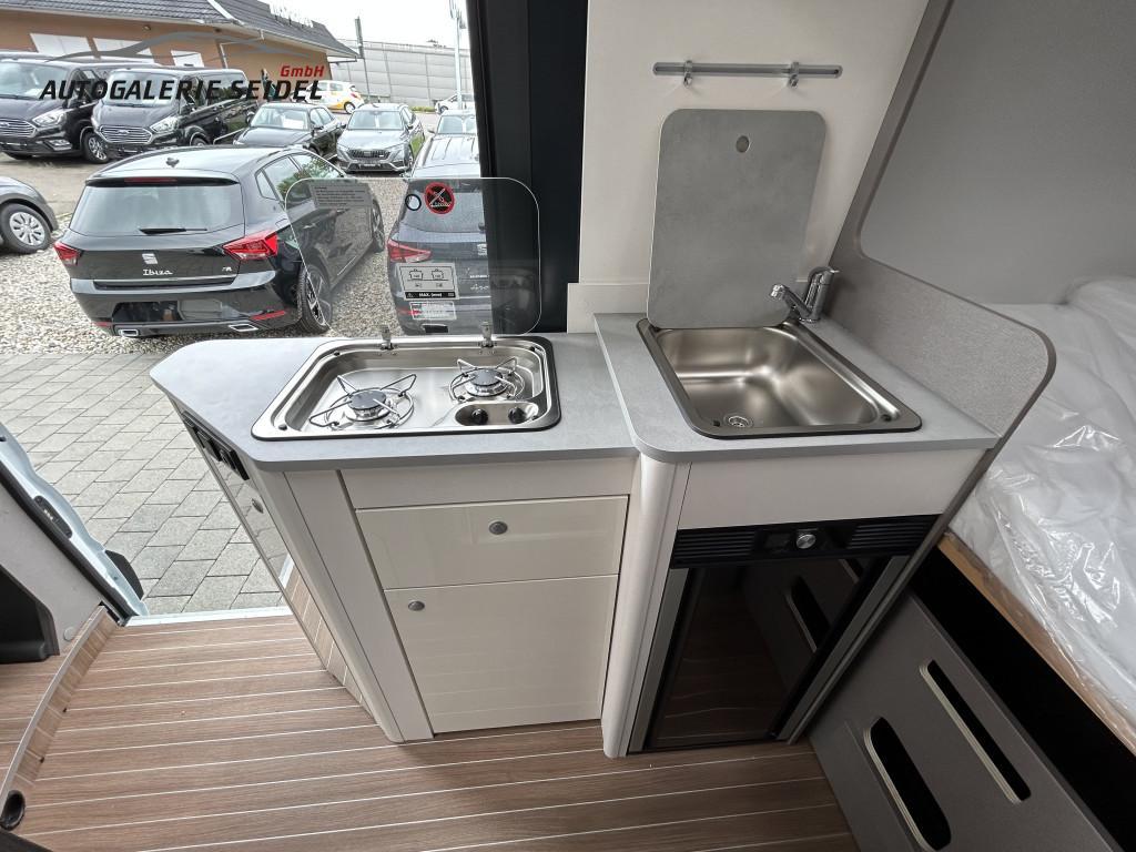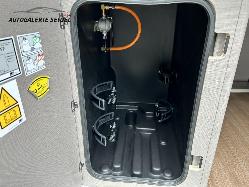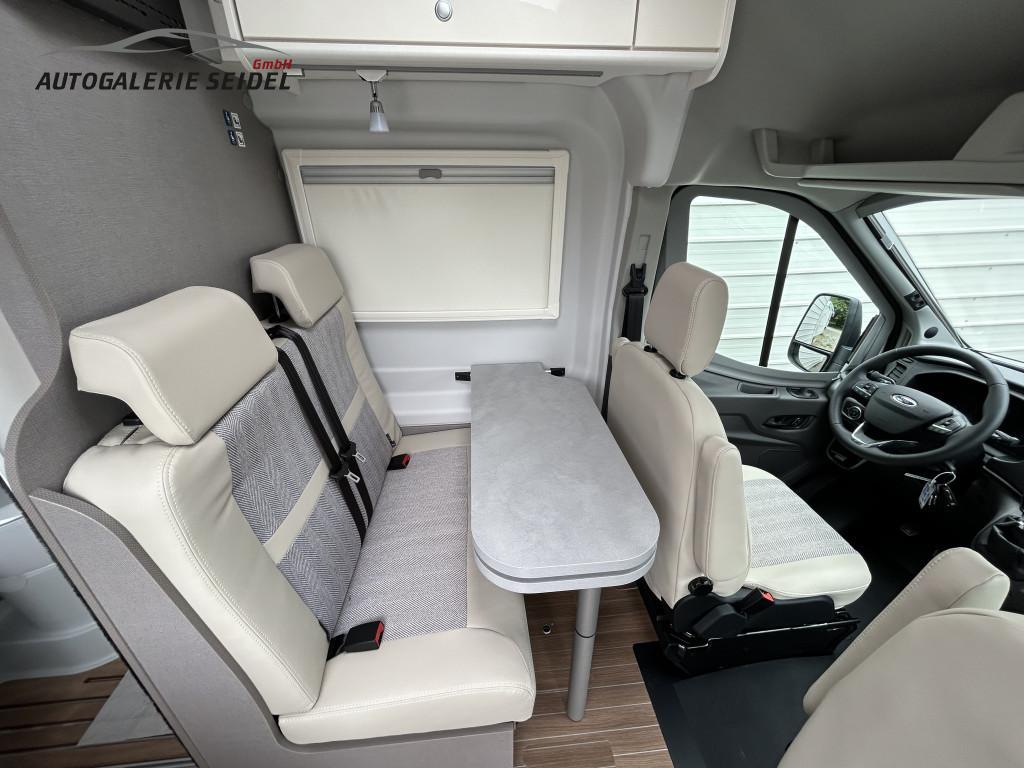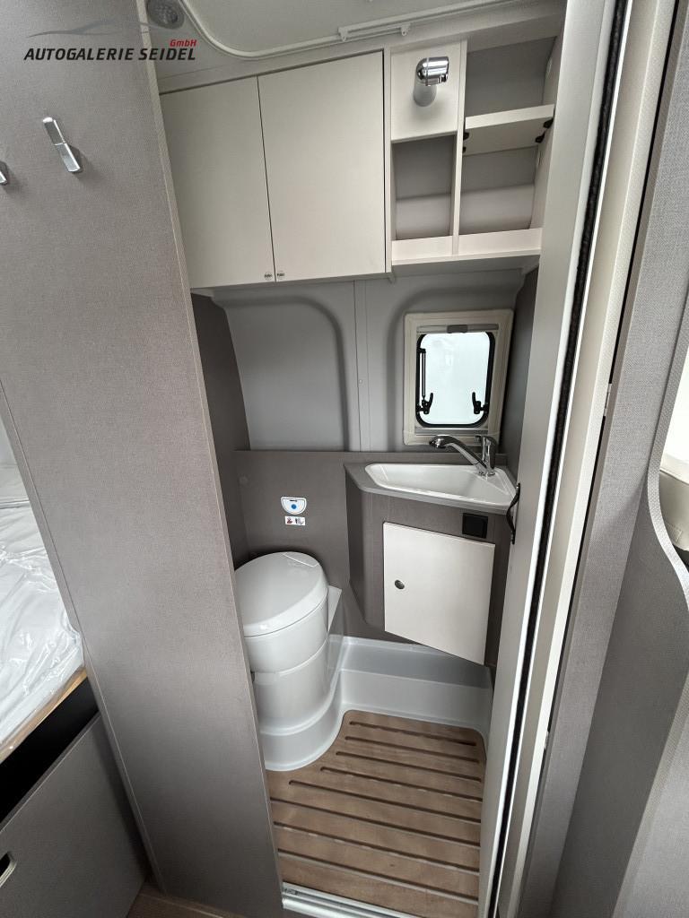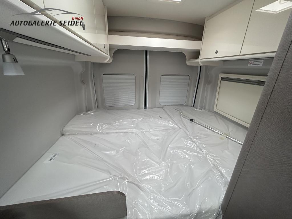 • Komfort - Paket bestehend aus: Einlegeboden in der Dusche, Klarglasdachhaube 70x50 über Sitzgruppe, Duschausstattung, Fenster im Bad, Fahrerhausjalousien, Breite Einstiegsstufe, Fliegengittertüre