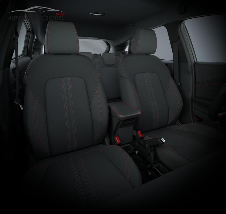 • Schwarzer Stoffbezug mit roter Naht