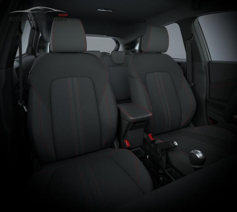 • Schwarzer Stoffbezug mit roter Naht