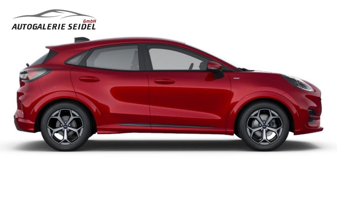 Winter-Paket (Frontscheibe teilweise heizbar / Lenkrad heizbar / Sitzheizung vorn / Frontscheibe heizbar), Verglasung hinten abgedunkelt (Privacy Glass), Anschlussgarantie (3 Jahre / 100.000 km), Dachhimmel schwarz, Einstiegszierleisten vorn, ST-Line-Design, Fahrassistenz-System Pre-Collision-System: Auffahrwarnsystem, Ford Audio-Navigationssystem SYNC 4, Klimaautomatik, Leuchtweitenregulierung vorn, LM-Felgen 7x17, Mittelkonsole mit Armlehne und Getränkehalter vorn, Notrufsystem eCall, Pedalerie mit Aluminium-Auflagen, Reifen 215/55 R17, Schadstoffarm nach Abgasnorm Euro 6e (EU6 EA), Sitzbezug / Polsterung: Stoff mit roten Nähten, Smartphone-Schnittstelle (Apple CarPlay & Android Auto), Sportfahrwerk, Fahrassistenz-System: Pre-Collision-System (Kamera-basiert) (Fahrassistenz-System: Abstandsregelung (Distance Alert, DA) / Fahrassistenz-System: Auffahrwarnsystem), Intelligent Protection System (IPS) (Gurtstraffer / Warnanlage für Sicherheitsgurte hinten / Warnanlage für Sicherheitsgurte vorn / Airbag Beifahrerseite abschaltbar / Airbag Fahrer-/Beifahrerseite / Kopf-Schulter-Airbag vorn und hinten / Seitenairbag vorn), 6 Lautsprecher, Ambiente-Beleuchtung vorn (LED), Farbdisplay (12 Zoll), Innenraumfilter: Staub- und Pollenfilter, Karosserie: 5-türig, Lendenwirbelstütze Sitz vorn links, Mild-Hybrid 92 kW (Motor 1,0 Ltr. - 92 kW EcoBoost), Otto-Partikelfilter (OPF), Radioempfang digital (DAB), Radstand 2588 mm, Türgriffe außen Wagenfarbe, Anti-Blockier-System (ABS), Antischlupfregelung (ASR), Antriebsart: Frontantrieb, Elektron. Stabilitäts-Programm (ESP), Getriebe 7-Gang - Doppelkupplungsgetriebe, Fensterheber elektrisch vorn + hinten mit Komfortschließung, Power KeyFree-Startfunktion, Sportsitze vorn, Zentralverriegelung mit Fernbedienung, Eco-Anzeige für verbrauchsoptimiertes Fahren (EcoCoach), Fahrassistenz-System: Verkehrsschildassistent, Geschwindigkeits-Regelanlage (Tempomat), Rückfahrkamera, Audiobedienung am Lenkrad, Lenkrad (Leder 3-Speichen), Servolenkung elektrisch, Außenspiegel elektr. verstell- und heizbar, Fahrassistenz-System: Fernlichtassistent (Scheinwerfer mit Abblendautomatik), Heckleuchten LED, Scheibenwischer mit Regensensor, Scheinwerfer LED, Tagfahrlicht LED, Einparkhilfe hinten, Fahrassistenz-System: Spurhalteassistent mit Müdigkeitserkennungs-Sensor, Reifendruck-Kontrollsystem, Start/Stop-Anlage