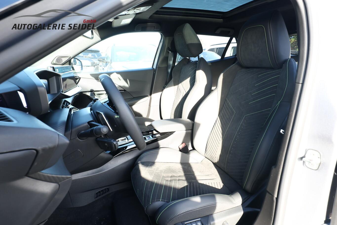 Alcantara-Paket (Lendenwirbelstütze Sitz vorn links, elektr. verstellbar / Sitz vorn links mit Einstiegs- und Massagefunktion / Sitzbezug / Polsterung: Alcantara / Kunstleder / Sitz vorn links elektr. verstellbar / Sitzheizung vorn), Schiebe-/Hebedach elektrisch (Glas), Ausstattungs-Paket: Vision, Navigation und Drive Assist (Induktionsladeschale für Smartphone / Multifunktionsanzeige mit Farbdisplay (DGT10CHD) / Navigationssystem i-Connect Advanced / Fahrassistenz-System: Aktiver Notbrems-Assistent (Active Safety Brake Plus) / Adaptive Geschwindigkeitsregelanlage (ACC) / Fahrassistenz-System: Autom. Distanzregelung (ACC inkl. Stop&Go-Funktion) / Rückfahrkamera mit 360° Umgebungsansicht / Peugeot Connect-Box / SOS-Taste (Notruf für Lokalisierung Fahrzeug) / Außenspiegel mit Umfeldleuchte / Fahrassistenz-System: Totwinkel-Assistent (SAM) / Fahrassistenz-System: aktiver Spurpositionierungsassistent), LM-Felgen 7x18 (Evissa, zweifarbig, schwarz), 4 Verzurrösen im Fond, 6 Lautsprecher, Außengriff in Wagenfarbe, BT-Freisprechanlage, Einschaltautomatik für Fahrlicht, Fensterheber elektr. hinten, Klimaautomatik, Kombiinstrument digital, Lenkrad (Leder), MirrorLink (Android Auto, Apple CarPlay), Mittelarmlehne vorne, Radioempfang digital (DAB), Reifen 215/55 R18, USB-Schnittstelle, Rücksitzlehne geteilt/klappbar (Rücksitzbank klappbar 1/3-2/3), Seitenscheiben hinten und Heckscheibe dunkel getönt (Heckscheibe getönt), Zentralverriegelung / Startanlage Keyless System (Startanlage Keyless System), Außenspiegel elektr. anklappbar (Außenspiegel anklappbar / Außenspiegel mit Umfeldleuchte), Scheinwerfer Full-LED (Leuchtweitenregelung elektrisch), Einparkhilfe vorn und hinten (Einparkhilfe hinten), Ambiente-Beleuchtung, Außenspiegel mit Abdeckkappen schwarz, Dachfarbe schwarz, Frontscheibe geräuschdämmend, Heckscheibe heizbar, Innenspiegel mit Abblendautomatik, Karosserie: 5-türig, Otto-Partikelfilter (GPF), Parkbremse elektrisch, Pyrotechnischer Gurtstraffer, Radstand 2605 mm, Sitze vorn höhenverstellbar, Warnanlage für Sicherheitsgurte, Anti-Blockier-System (ABS), Fahrassistenz-System: Aktiver Notbrems-Assistent (Active Safety Brake), Antischlupfregelung (ASR), Antriebsart: Frontantrieb, Elektron. Stabilitäts-Programm (ESP, Bosch), Getriebe Automatik - Doppelkupplungsgetriebe (6-Stufen, Hybrid), Airbag Beifahrerseite abschaltbar, Airbag Fahrer-/Beifahrerseite, Fensterheber elektr. vorn, links mit Impulsgeber, Isofix-Aufnahmen für Kindersitz, Kopf-Airbag-System, Kopf-Airbag-System hinten, Seitenairbag vorn, Zentralverriegelung mit Fernbedienung, Fahrmodusschalter, Dachreling schwarz, Fahrassistenz-System: Berganfahrhilfe, Fahrassistenz-System: Verkehrszeichenerkennung, Lenkrad mit Multifunktion, Servolenkung elektrisch, Außenspiegel elektr. verstell- und heizbar, beide, Fahrassistenz-System: Fernlichtassistent, Scheibenwischer mit Regensensor, Tagfahrlicht LED, Fahrassistenz-System: aktiver Spurassistent (Lenkunterstützung), Fahrassistenz-System: Müdigkeitserkennungs-Sensor, Reifendruck-Kontrollsystem