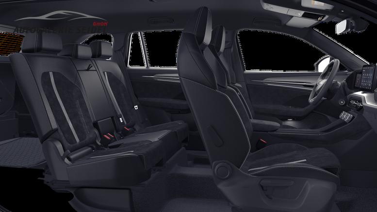 • SportLine Designpaket (Sportsitze vorne, Sitzbezüge: Schwarz/Grau Suedia/Kunstleder mit grauer Naht, Dekoreinlagen: 'Peter Chrome', Armaturenbrettverkleidung: Grau Suedia mit grauer Kreuznaht, Türverkleidung: Grau Suedia mit grauer Kreuznaht, Vordere Armlehne: Grau Suedia mit grauer Naht, Kniepolster Mittelkonsole: 'Dinamica Soul')